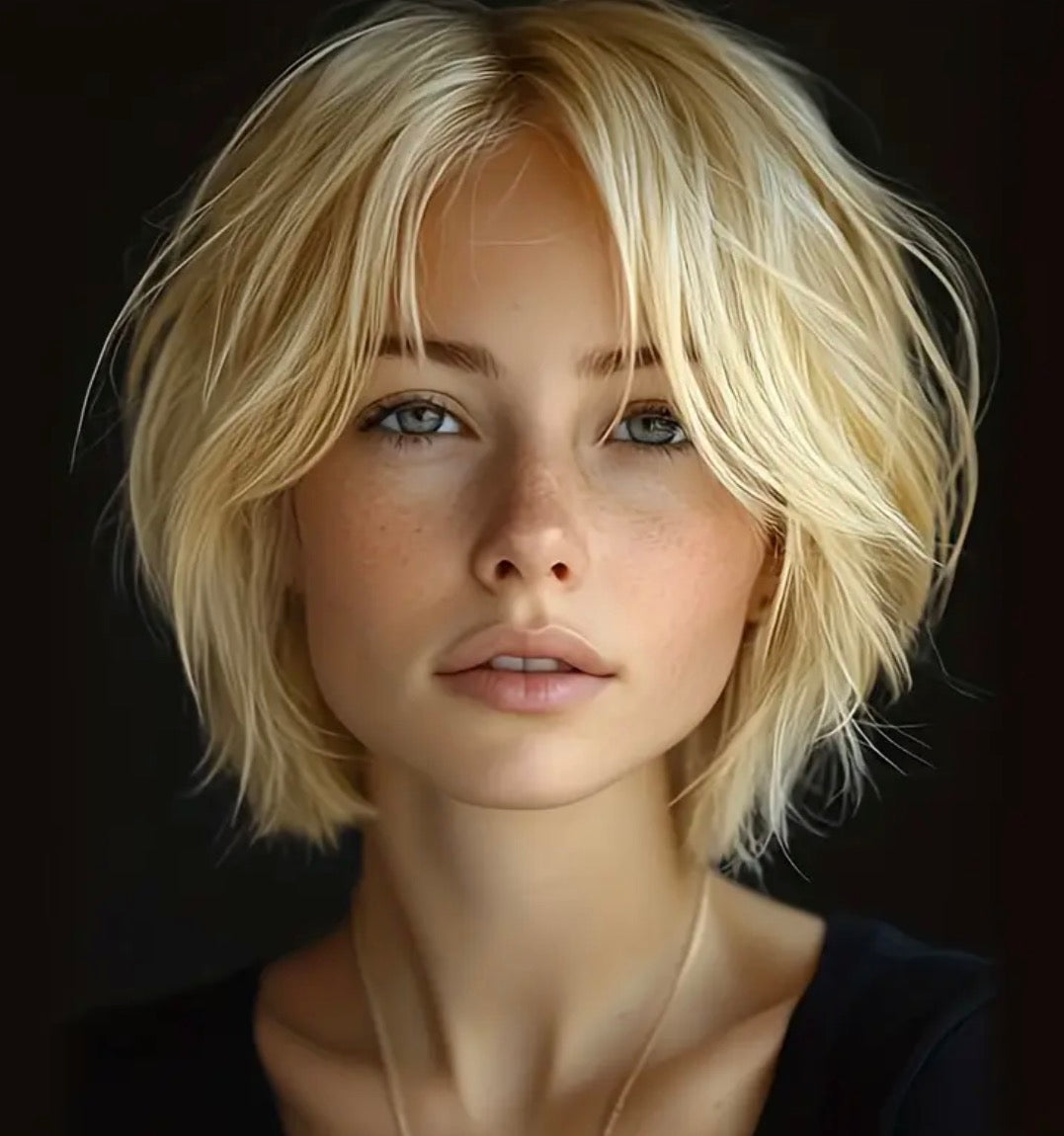 Kim-Honey Blonde Pixie Wig with Bangs – Layered Straight, 180% Density, Brazilian Remy Human Hair